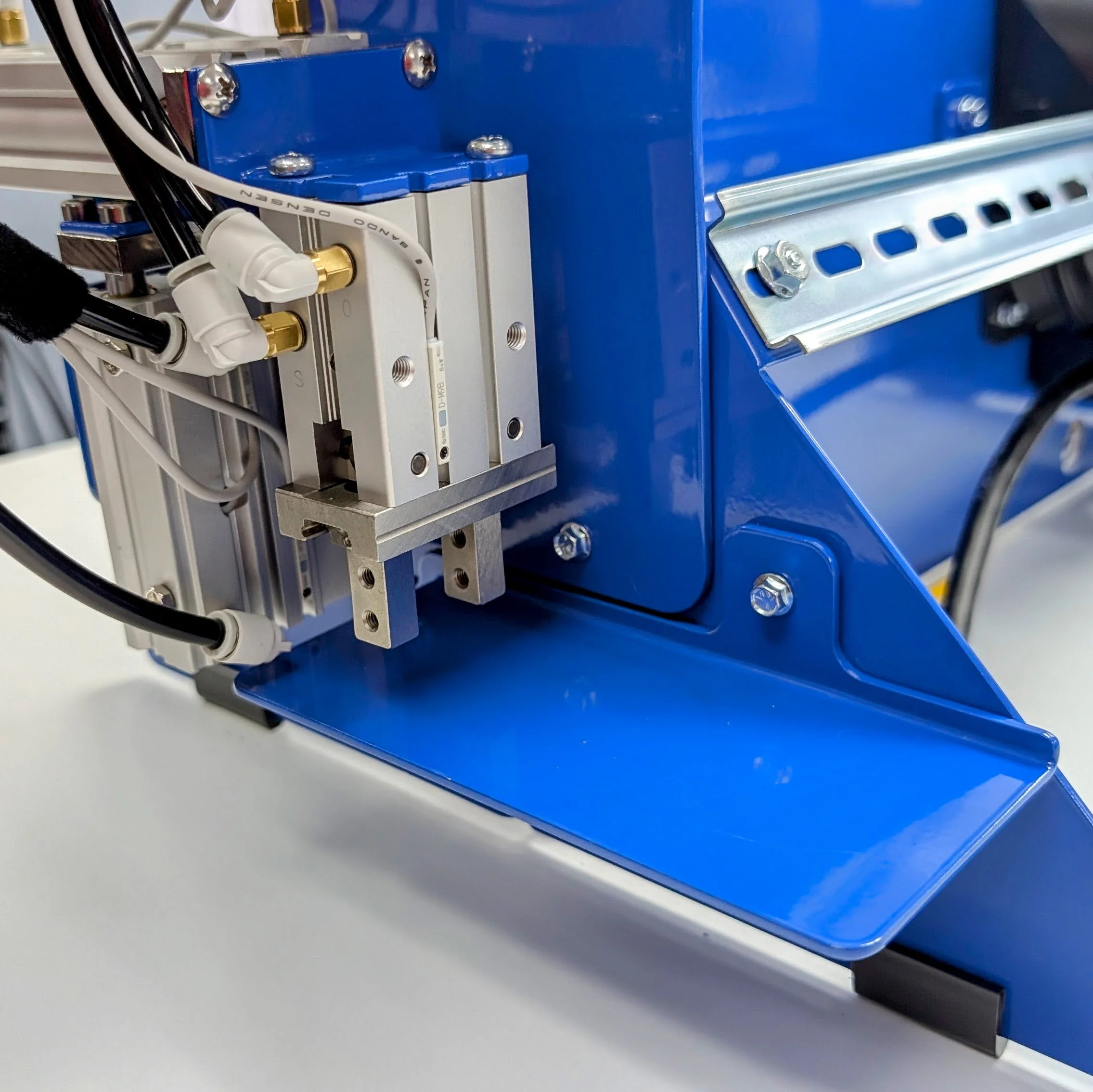 I/O Requirements: The station requires 6 Digital Inputs (for cylinder and gripper position sensors) and 5 Digital Outputs (to control the solenoid valve manifold).